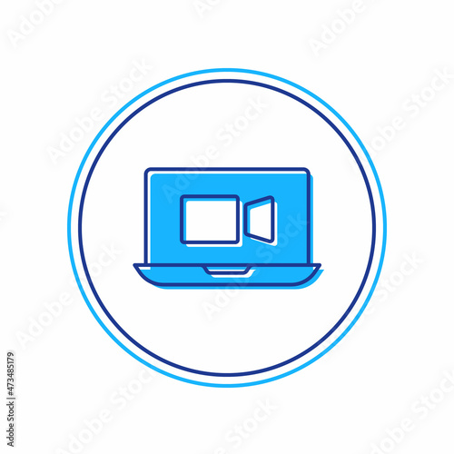 Filled outline Video chat conference icon isolated on white background. Online meeting work form home. Remote project management. Vector