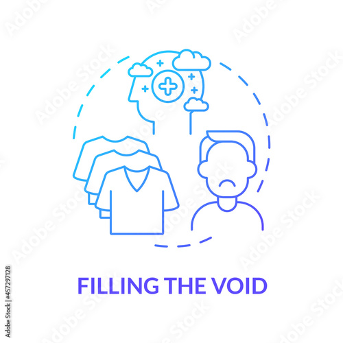 Filling void blue gradient concept icon. Shopping when feel sad and stress. Sense of emptiness. Worthless buying abstract idea thin line illustration. Vector isolated outline color drawing