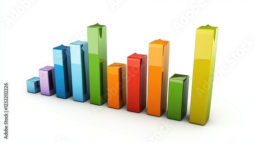 Financial bar graphs, success and growth concept, surreal style, isolated on white background.
