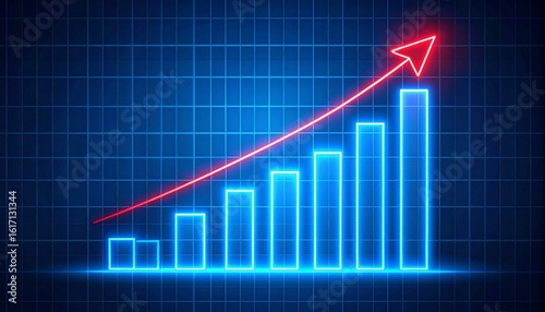Financial dashboard with glowing charts and red trend line