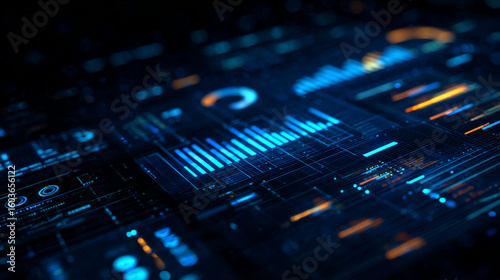 Financial Data Analysis and Business Strategy Charts with Marketing, Planning, and Technology Hologram Concept