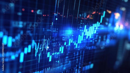 Financial data analysis screen, market trends, glowing charts, digital background, investment