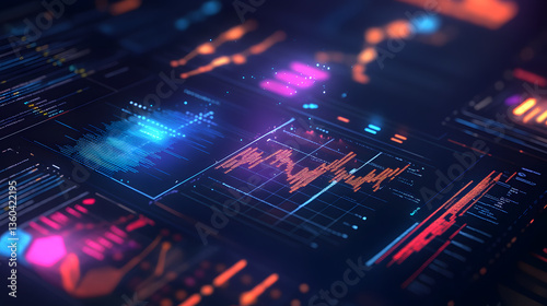 Financial Data: Exploring complex financial data visualizations, presenting trends and patterns with a futuristic and technological aesthetic.