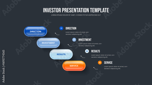 Financial Development 4 Element Diagram Slideshow Template. Business Visualization Four Option Infographic Slide Layout. Sales Overview Frame Design Vector Illustration.