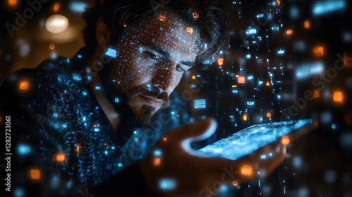 Financial expert using AI-driven risk assessment tools on a mobile device
