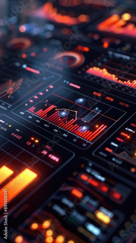 Financial graphs and big data analysis on a 3D fintech dashboard, showcasing economic growth, virtual dashboard, digital marketing, global economy