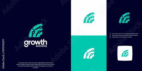 financial logo with electric circuit concept, digital economic growth, design vector template.