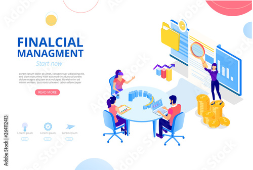 Financial management, audit, development strategy, crisis management. Homepage design template with chart.