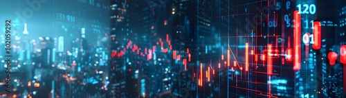 Financial Market Data Analysis on LED Display with Cityscape Background