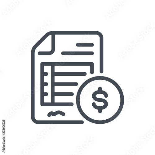 Financial Report line icon. Invoice Document with Dollar Coin vector outline sign.