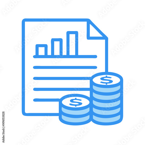 Financial report with growth chart and money coins for business and investment analysis showing success on transparent background