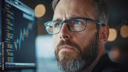 Financial trader focused on stock market data and trends, analyzing charts
