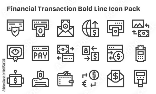 Financial Transaction Design Icons - 18 in Bold Line Style