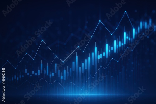 Financial Trend Ascent: Dynamic illustration visualizing upward financial trends with elegant lines and bars against a radiant dark backdrop, perfect for financial concepts.