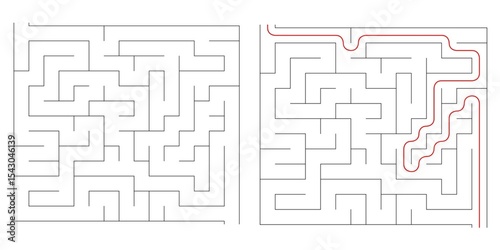 Find right way puzzle game with the solution. education logic game for kids. labyrinth maze game. simple logic game. puzzle for children