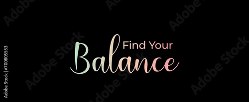 Find your balance handwritten slogan on dark background. Brush calligraphy banner. Illustration quote for banner, card or t-shirt print design. Message inspiration. Aesthetic design.