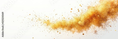 Fine gold particles explode, isolated on white, graphic, fine, photography