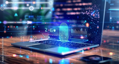 Fingerprint biometric security concept on digital screen