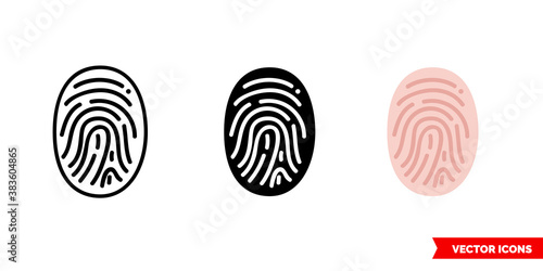 Fingerprint icon of 3 types color, black and white, outline. Isolated vector sign symbol.