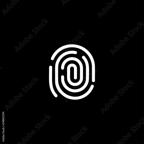 Fingerprint identification app scanner logo. White thumbprint verification, biometric identity system logotype. Electronic security service vector illustration. FBI, police evidence data icon.