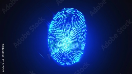 Fingerprint Identity Security - Abstract blue glowing fingerprint, symbolizes security, privacy, identity, technology, and data protection