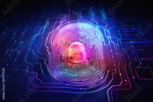 Fingerprint on digital background. A cutting edge concept in identity verification, biometrics, and data security technology, pioneering the future of access control and cybersecurity