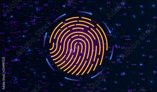 Fingerprint Scanning Identification System. Biometric Authorization and Business Security Concept. Scanning Identification System. Abstract digital conceptual technology security background with lock.