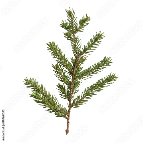 Fir branch showcasing vibrant green needles against a clean white background for natural decor, Fir branchisolated on white background
