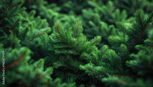 Fir tree branch in close-up with soft focus effect