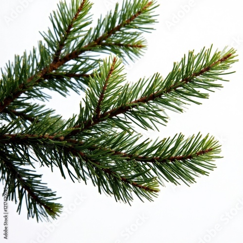 Fir tree branch isolated on white with a shadow, solitude, frost, branch