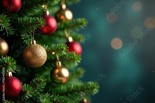Fir tree decorated with ornaments on its branches, Christmas tree decorations, firm ornaments