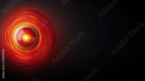 Fire alarm evacuation signal concept. A vibrant, swirling design featuring a central glowing orb surrounded by red and orange circular patterns against a dark background.