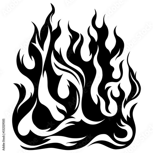 Fire flames isolated on white background. Tribal tattoo design. Black png silhouette.