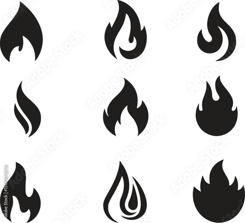 fire flames set icons black Colors with background