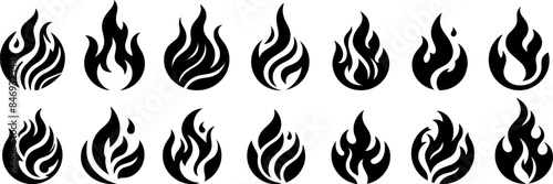 Fire icon set. Fire flame vector collection .Flame of different shapes . Fire flame logo silhouette.