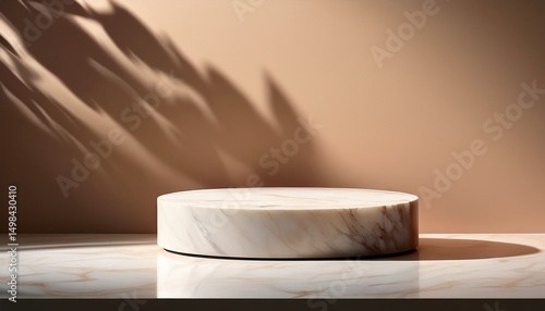 Firefly_“Minimalist marble pedestal on soft beige background with natural