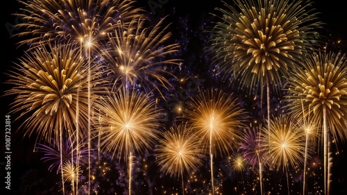 Fireworks background. New Year background with gold fireworks
