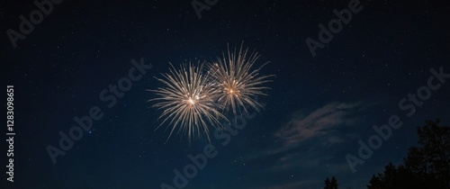 Fireworks display in night sky with stars and clouds captured during celebration event