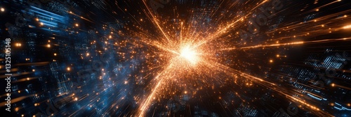 Fireworks explode in a vibrant spectacle over the city skyline, illuminating the night sky with golden light and energy