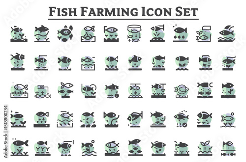 Fish Farming Icon Set. Source Quality Seed Icon Set. Simple Vector Illustration. For Website esign, Logo, App, Template, Ui, Etc. Fishing and aquaculture icons set. outline, linear, marine and symbols