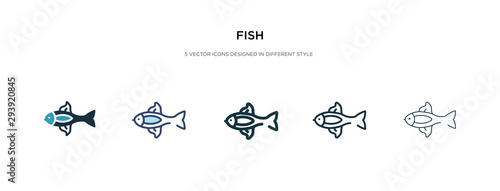fish icon in different style vector illustration. two colored and black fish vector icons designed in filled, outline, line and stroke style can be used for web, mobile, ui