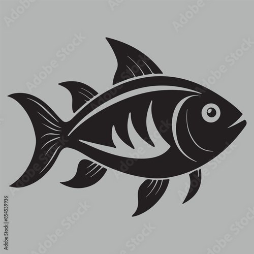 Fish Silhouette. Fish silhouette in line art style. Fish by hand drawing. Fish tattoo on white background. Black and white fish on white background. Marine animal illustration. Marine life animal.