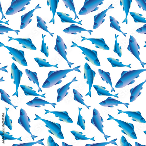 Fish vector illustration for background, fabric, wrapping paper, wallpaper. Surface design with herring or cod fishes.