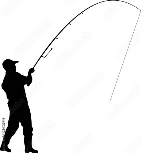 fisherman with a fishing rod, throws a fishing rod, fishing.vector image