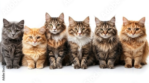 Five Adorable Maine Coon Kittens Sitting in a Row on White Background