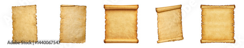 Five Aged Parchment Scrolls on a Black Background, Ready for Adventure transparent background Generative AI