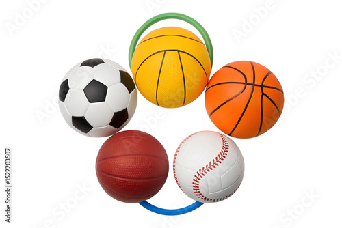 Five Sport Balls Arranged in Olympic Rings Symbol on White Background