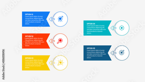 Five Step Infographic design element template for presentation. info graphic illustration. process diagram and presentations step, banner, flow chart, 5 option template.