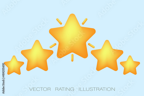 Five yellow stars . Achievements for games. Customer rating feedback concept from client about employee of website. For mobile applications. Vector illustration