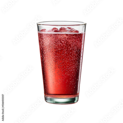 fizzy raspberry soda in clear glass isolated die-cut